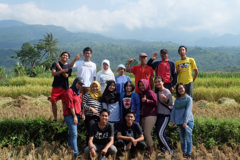 Foto bersama dengan masyarakat sekitar di desa Dadawah, pada saat selesai melakukan panen raya bersama, dengan view Gunung Ciremai, Jawa Barat.